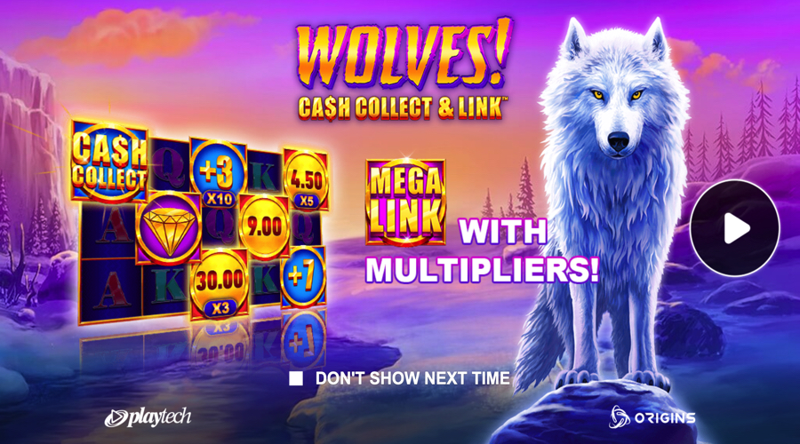 Loups! Collecte d'argent et lien Le jeu s'ouvre avec 30 lignes fixes sur une grille de 5 rouleaux et 3 rangées, puis ajoute des prix en pièces qui ne sont payés que par l'intermédiaire d'un collectionneur.